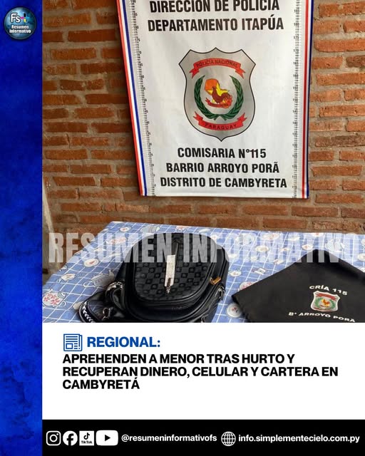 Una adolescente de 17 años fue aprehendida este martes en el barrio Arroyo Porã, distrito de Cambyretá, en prosecución a un supuesto hecho de hurto. El procedimiento permitió recuperar la...