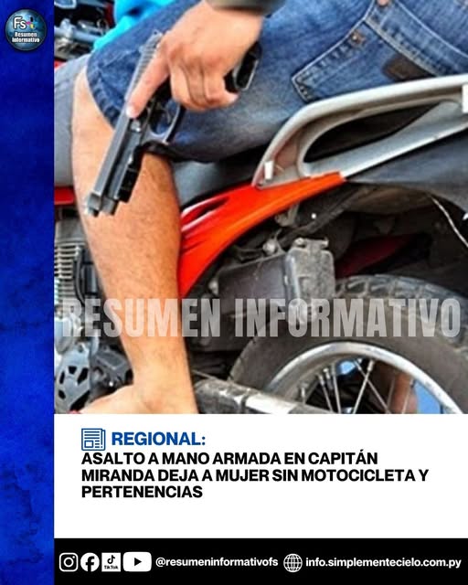 ASALTO A MANO ARMADA EN CAPITÁN MIRANDA DEJA A MUJER SIN MOTOCICLETA Y PERTENENCIAS