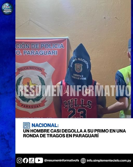 Un hombre fue detenido como sospechoso de intentar degollar a su primo aparentemente por celos. El hecho ocurrió en una ronda de tragos en San Roque González de Santa Cruz....