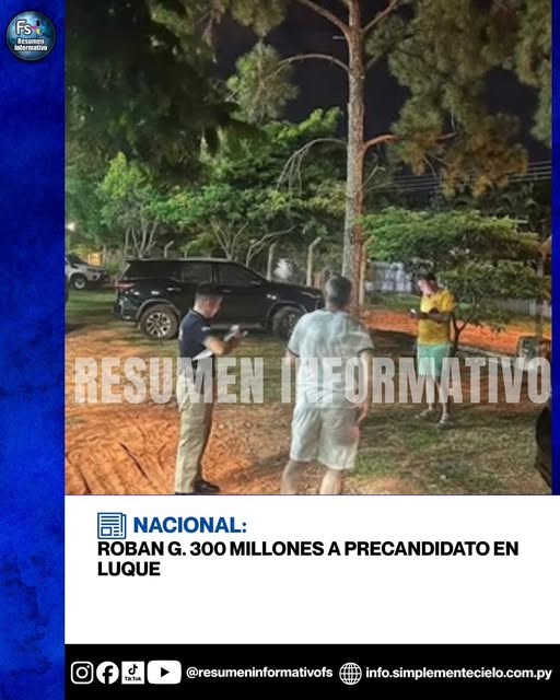 Un precandidato colorado denunció el robo de G. 300 millones tras un ataque de tortoleros en el Garden Club Paraguayo. Un millonario robo se registró en Luque luego de que...
