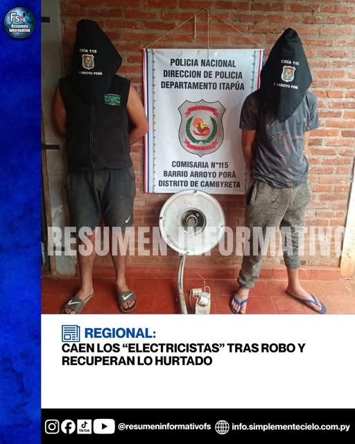 Dos hombres fueron aprehendidos por agentes de la Comisaría 115° en el barrio Arroyo Porã, distrito de Cambyretá, en el marco de un supuesto hecho de hurto ocurrido en la...