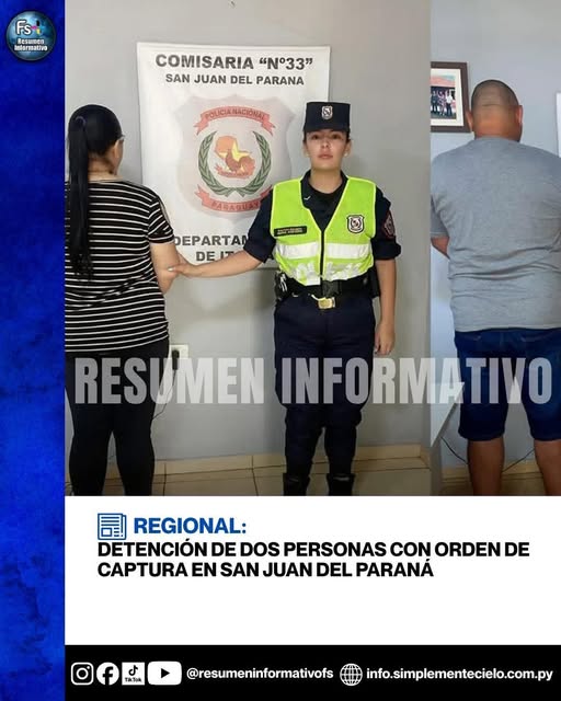 La Dirección de Policía de Prevención y Seguridad del Departamento de Itapúa informó la detención de dos personas con orden de captura vigente, en un procedimiento realizado en la Comisaría...