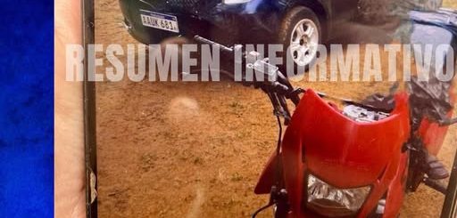 El hecho de Lesión y daños materiales en accidente de tránsito, choqué entre motocicletas, ocurrió a las 09 horas aproximadamente de ayer domingo 01 de enero sobre la Avda. Mcal. López camino al Puerto de Obligado Departamento de Itapúa. Resultaron víctimas, Jhan Carlos Sotelo Paraguayo de 27 años de edad, domiciliado en Bella Vista, quien circulaba supuestamente a bordo de una motocicleta de la marca Taiga, color negro, cuyos demás datos se desconoce y por otra parte Alfredo Ojeda Aranda, Paraguayo de 38 años de edad, domiciliado en Obligado, quien circulaba supuestamente a bordo de una motocicleta de la marca Kenton, modelo Fusión 110 cc, color rojo, cuyos demás datos se desconoce. De acuerdo a datos policiales tuvieron conocimiento del hecho a través de una llamada telefónica recepcionada en la Oficina de Guardia de esta Comisaria, de inmediato personal policial acudieron al Centro de Salud local donde dialogaron con la médica de guardia quien manifestó que ambas personas fueron auxiliadas hasta dicho nosocomio por personal del Cuerpo de Bomberos Voluntarios, siendo diagnosticados con “TRAUMATISMO DE CRÁNEO ENCEFÁLICO GRAVE”, por lo que fueron derivados hasta el Hospital Regional de Encarnación. Se desconoce las circunstancias del hecho por no haber testigos presenciales, se realizó un rastrillaje por el lugar del hecho no encontrándose las motocicletas involucradas, presumiéndose que fueron retiradas del lugar por familiares. El hecho fue comunicado al Fiscal de turno abogado Reinaldo Castillo.