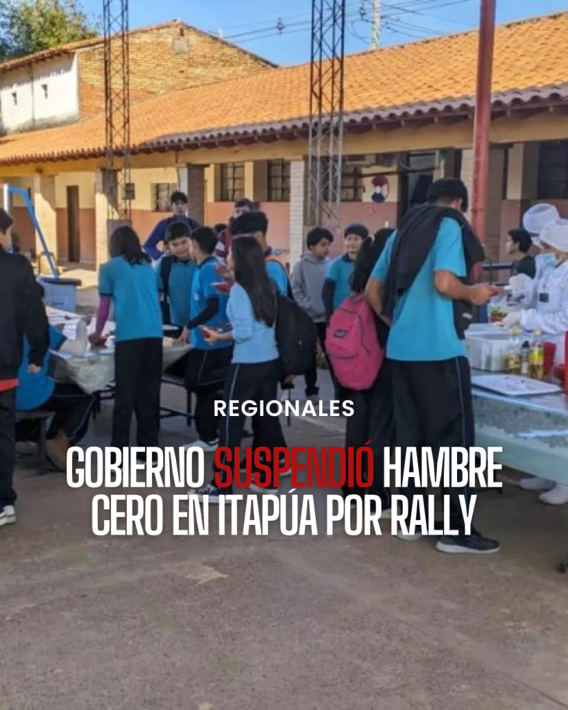 El Ministerio de Desarrollo Social (MDS) informó que decidió suspender la alimentación escolar de alumnos de 12 municipios de Itapúa. Esta determinación se debe a la disposición del Ministerio de Educación y Ciencias (MEC) de desarrollar clases virtuales y suspender las presenciales, debido a la organización del evento WRC-Rally del Paraguay 2025, que se desarrollará en el mencionado departamento desde el 28 al 31 de agosto.