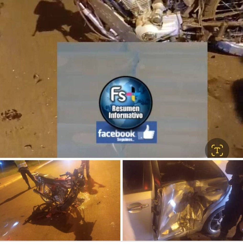 Un accidente de tránsito registrado en la noche del viernes 22 de agosto dejó como saldo importantes daños materiales y un motociclista hospitalizado. El hecho ocurrió alrededor de las 20:30 horas sobre la Avenida Marcial Samaniego, en la intersección con la calle Coronel Bogado, en la ciudad de Bella Vista.