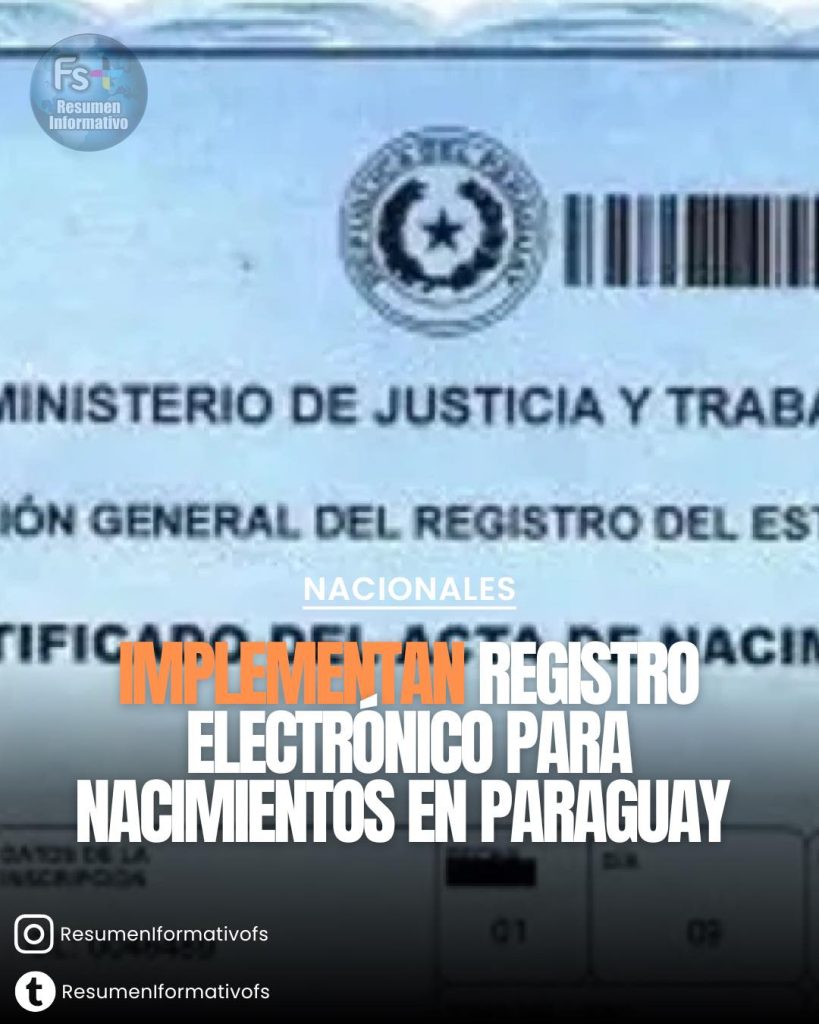 La Dirección de Registro Civil de Paraguay comenzó a implementar mediante el sistema Registro Único de las Personas (RUP) la inscripción digital de los niños, cuyos padres se acerquen a solicitar la partida de nacimiento. Los padres pueden acceder en tiempo real a este documento mediante la identidad electrónica.