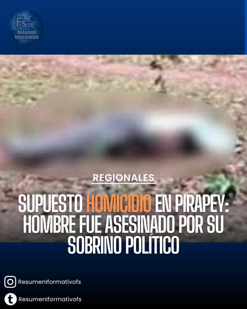 SUPUESTO HOMICIDIO EN PIRAPEY: HOMBRE FUE ASESINADO POR SU SOBRINO POLÍTICO.