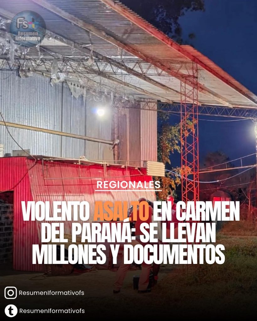VIOLENTO ASALTO EN CARMEN DEL PARANÁ: SE LLEVAN MILLONES Y DOCUMENTOS.