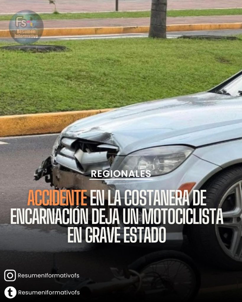 ACCIDENTE EN LA COSTANERA DE ENCARNACIÓN DEJA UN MOTOCICLISTA EN GRAVE ESTADO.
