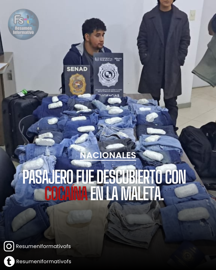 Agentes antidrogas detuvieron a un hombre de 29 años en el aeropuerto Silvio Pettirossi, desde donde pretendía salir con drogas en la maleta, rumbo a Europa.