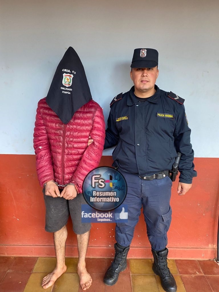 Agentes de la Comisaría 13ª de Obligado lograron la aprehensión de un joven de 24 años, identificado como Luis Fernando Sotelo Andino, quien contaba con una orden de captura pendiente por un hecho de robo agravado. El procedimiento se llevó a cabo este sábado 6 de septiembre, a las 15:30 horas, en la vía pública del barrio Ko’eju.