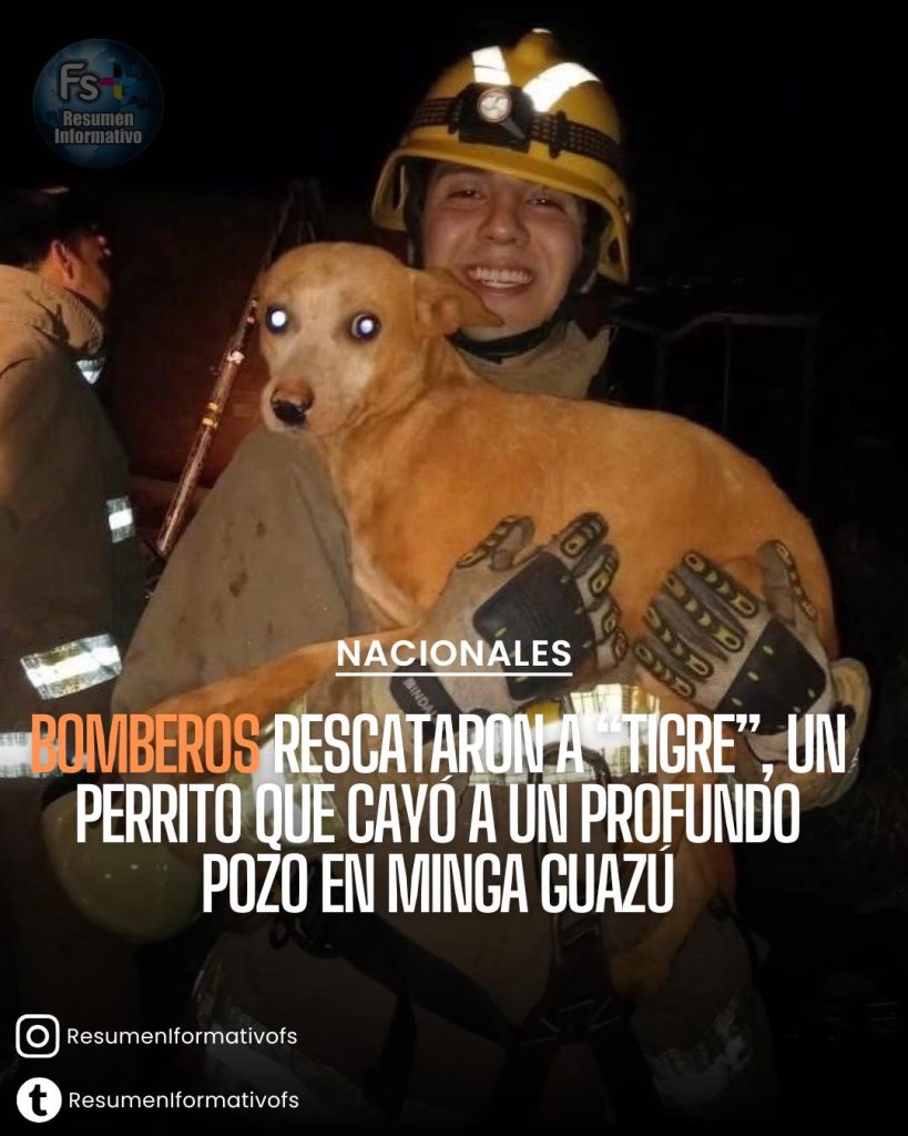 BOMBEROS RESCATARON A “TIGRE”, UN PERRITO QUE CAYÓ A UN PROFUNDO POZO EN MINGA GUAZÚ.