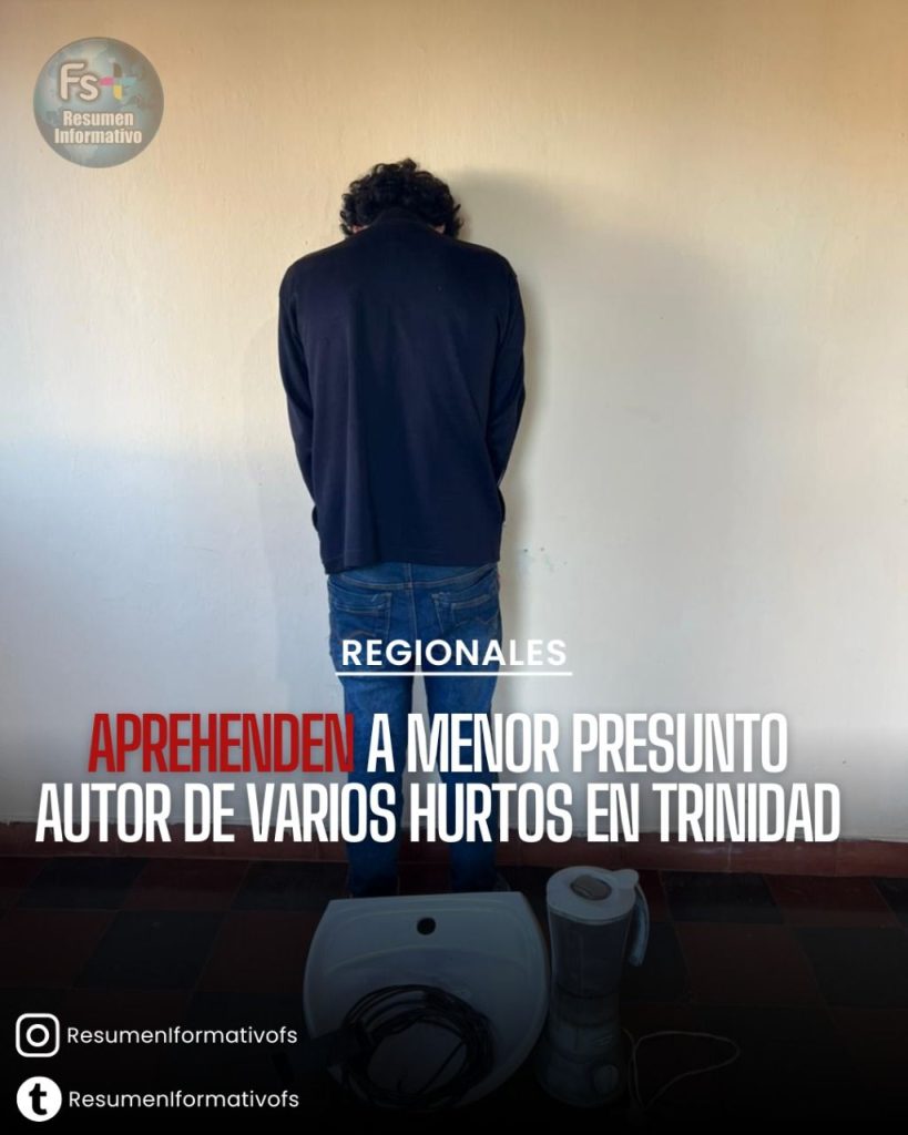 POLICÍA APREHENDIÓ A UN MENOR SINDICADO COMO AUTOR DE HURTOS EN TRINIDAD.