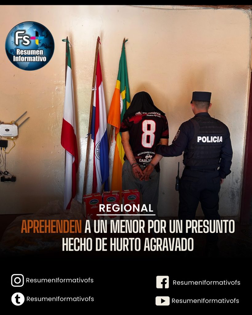 Un menor de 17 años fue aprehendido este jueves por agentes de la Comisaría 20.ª de Carlos Antonio López, en prosecución de un hecho de hurto agravado ocurrido en el interior de la Escuela N.° 646 Mariscal José Félix Estigarribia.