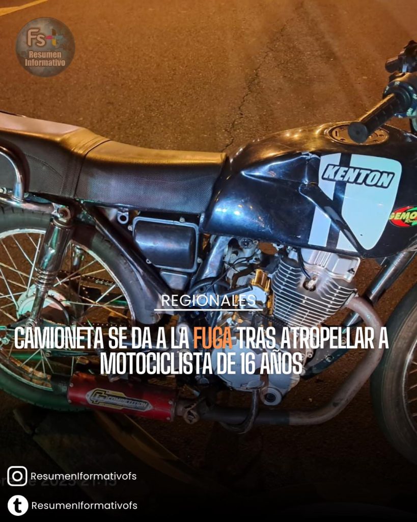 CAMIONETA SE DA A LA FUGA TRAS ATROPELLAR A MOTOCICLISTA DE 16 AÑOS.