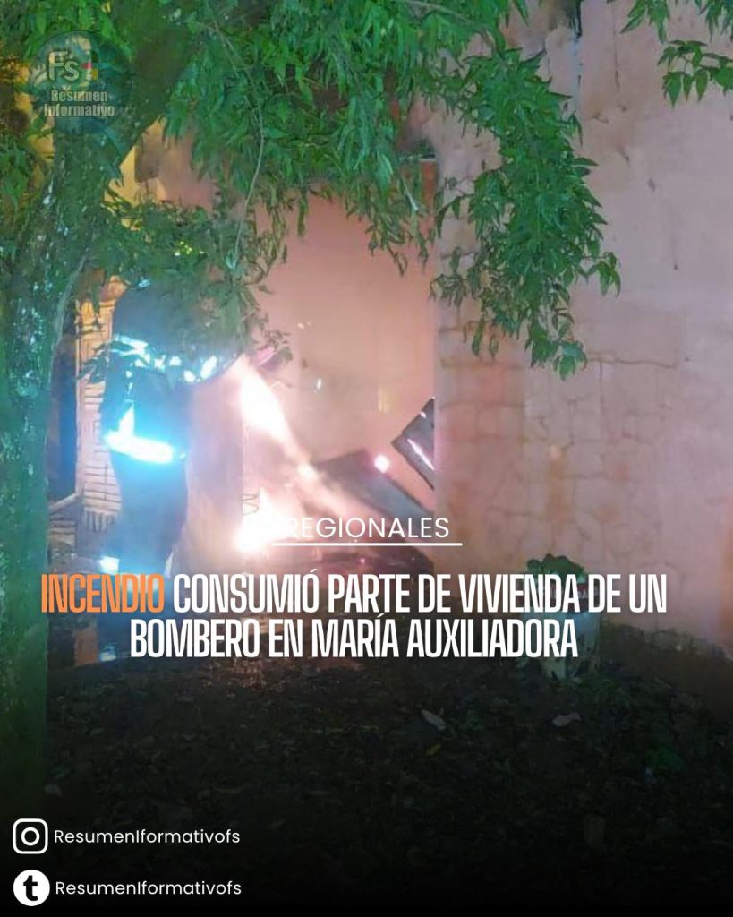 INCENDIO CONSUMIÓ PARTE DE VIVIENDA DE UN BOMBERO EN MARÍA AUXILIADORA.