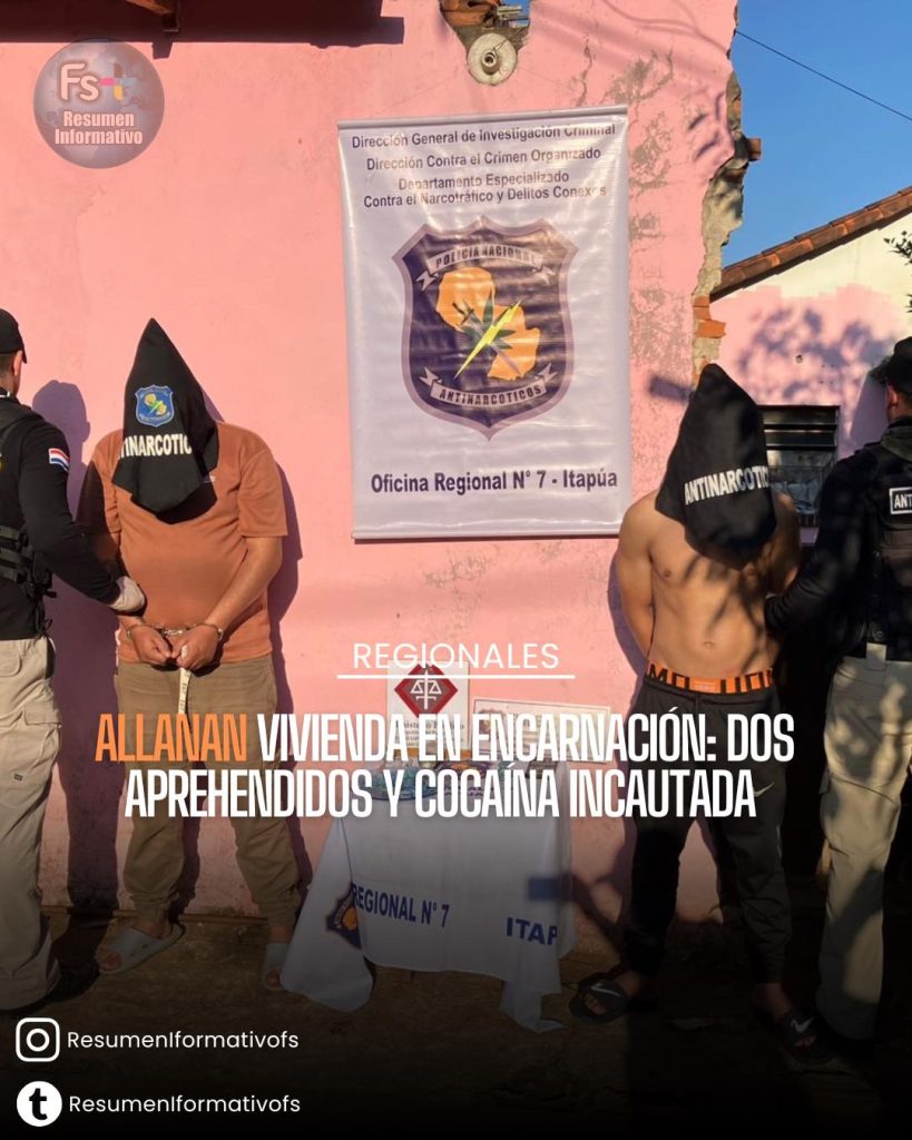 ALLANAN VIVIENDA EN ENCARNACIÓN: DOS APREHENDIDOS Y COCAÍNA INCAUTADA.