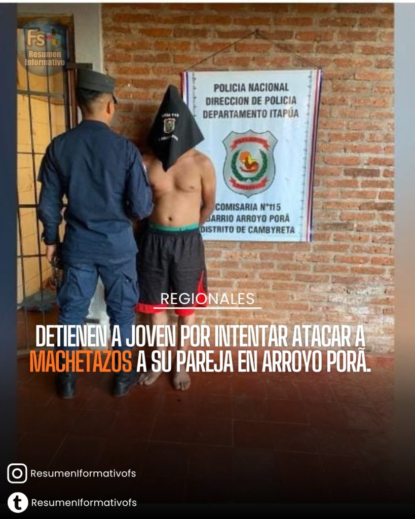 Un grave hecho de violencia doméstica terminó con la detención de un joven de 27 años en el barrio Arroyo Porã, distrito de Cambyretá. El sospechoso fue arrestado tras agredir física y verbalmente a su pareja y amenazarla con un machete en un inquilinato de la zona.