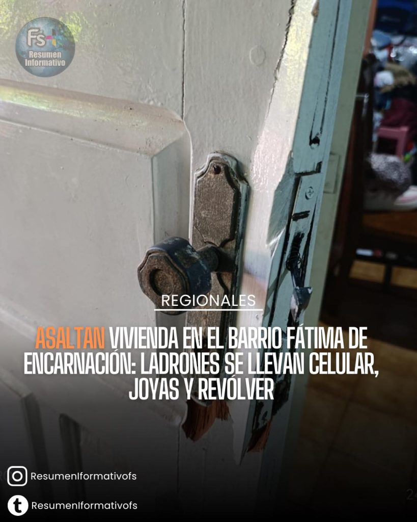 ASALTAN VIVIENDA EN EL BARRIO FÁTIMA DE ENCARNACIÓN: LADRONES SE LLEVAN CELULAR, JOYAS Y REVÓLVER.