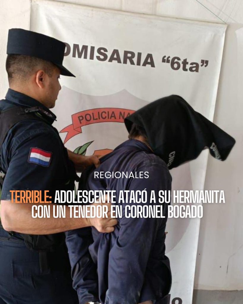 Un alarmante caso de violencia intrafamiliar conmocionó al barrio Santa Librada de Coronel Bogado la mañana del martes 23 de septiembre, cuando un adolescente de 16 años fue aprehendido tras atacar con un tenedor a su hermana de 11 años.