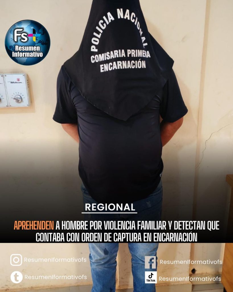 APREHENDEN A HOMBRE POR VIOLENCIA FAMILIAR Y DETECTAN QUE CONTABA CON ORDEN DE CAPTURA EN ENCARNACIÓN.