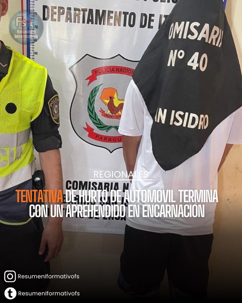 TENTATIVA DE HURTO DE AUTOMÓVIL TERMINA CON UN APREHENDIDO EN ENCARNACIÓN.