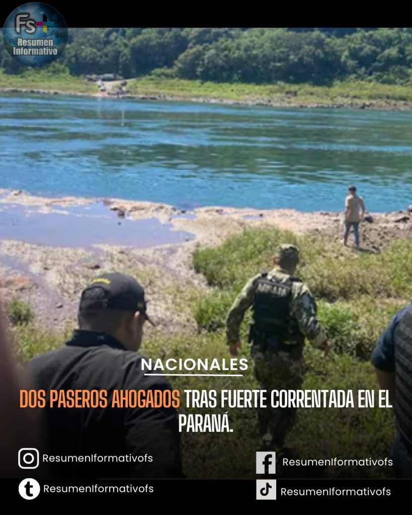 La Dirección de Policía de Prevención y Seguridad de Alto Paraná informó acerca del ahogamiento de dos personas en el río Paraná. Las víctimas son Elsio Tomás, Acosta Fernández (27) y José Villalba Báez (19).