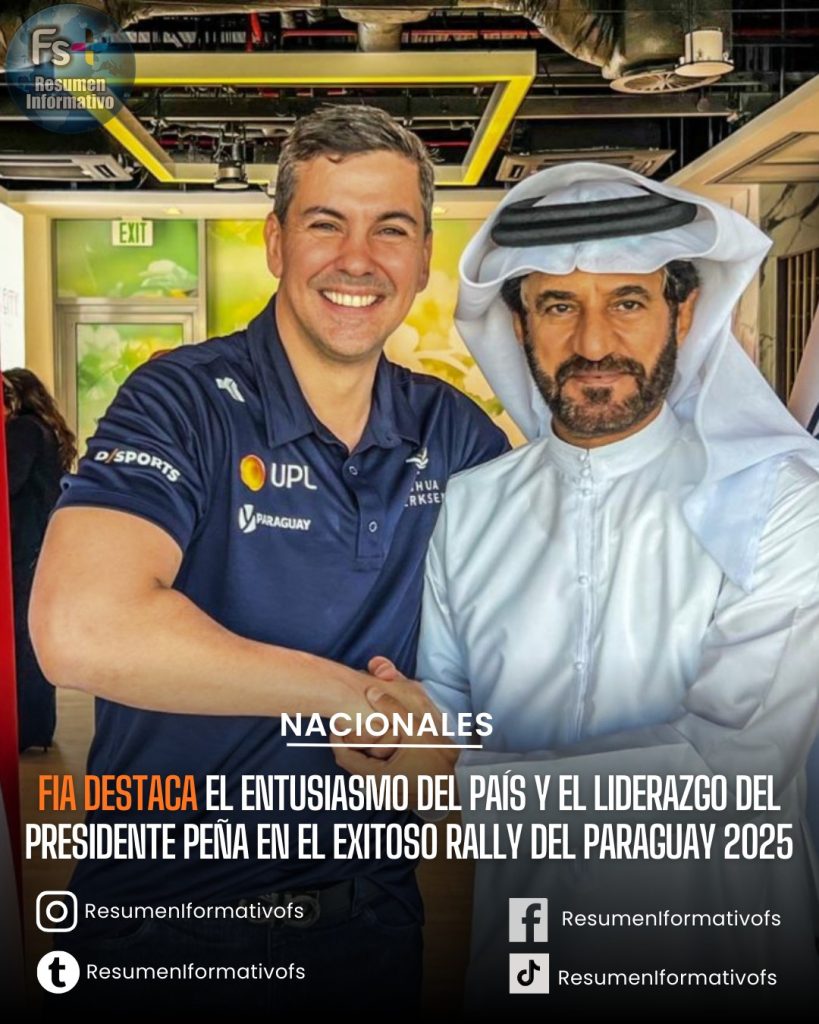 FIA DESTACA EL ENTUSIASMO DEL PAÍS Y EL LIDERAZGO DEL PRESIDENTE PEÑA EN EL EXITOSO RALLY DEL PARAGUAY 2025.