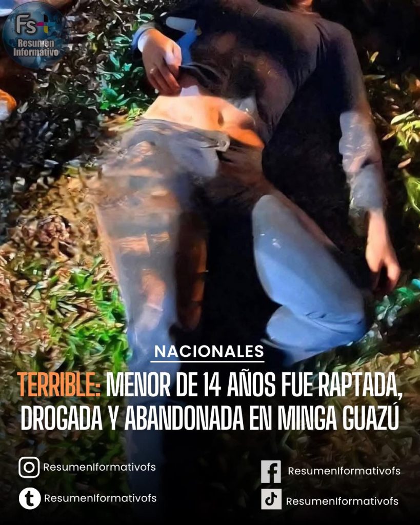 TERRIBLE: MENOR DE 14 AÑOS FUE RAPTADA, DROGADA Y ABANDONADA EN MINGA GUAZÚ.