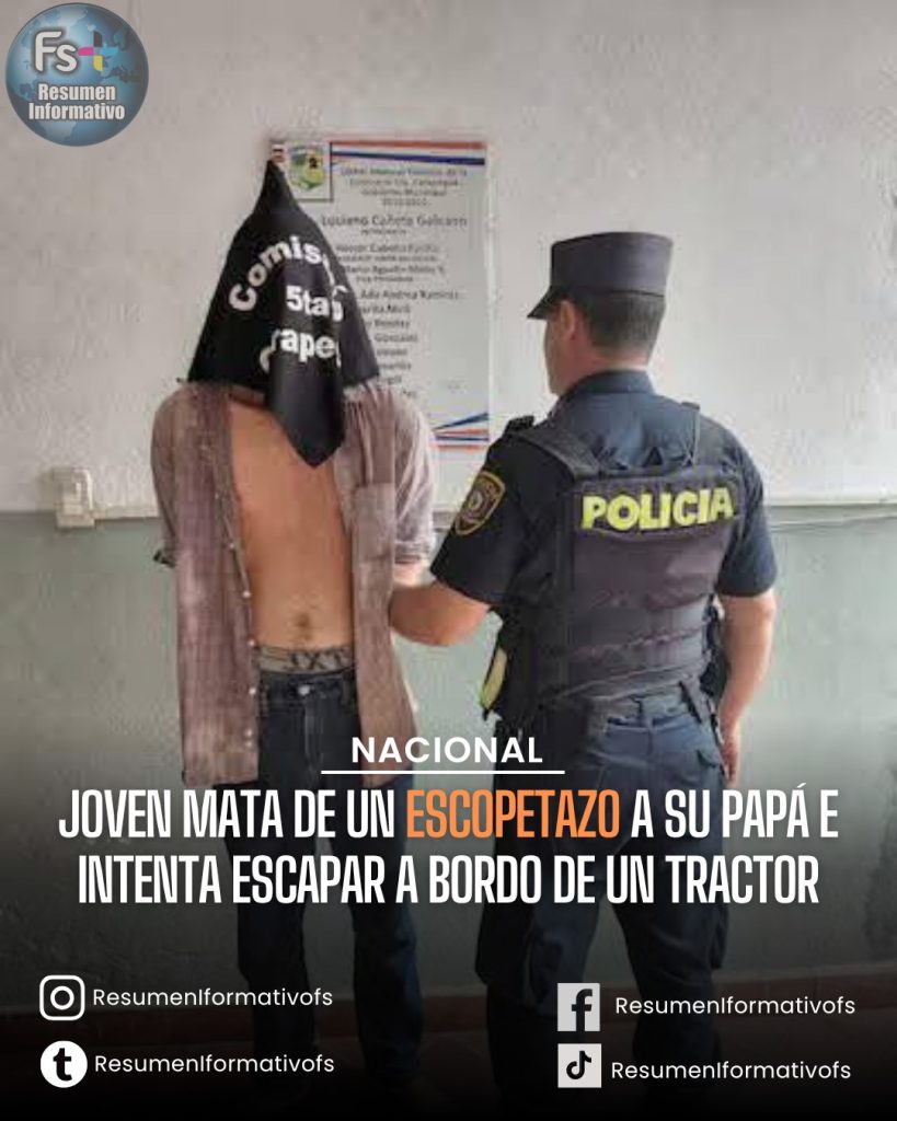 Un joven, presumiblemente adicto a sustancias prohibidas y al alcohol habría asesinado de un escopetazo a su padre, luego de una airada discusión en el interior de un establecimiento rural en la localidad conocida como Zanja Pytá de la ciudad de Villeta. El sospechoso escapó del sitio a bordo de un tractor, pero la Policía lo alcanzó y capturó en Carapeguá, según informaron.