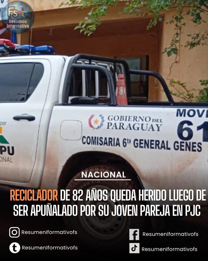 Un hombre de 82 años que trabaja como reciclador quedó herido luego de recibir varias puñaladas. La principal sospechosa es su pareja, una mujer de 36 años, con quien habría discutido en una calle vecinal de Pedro Juan Caballero, Amambay.