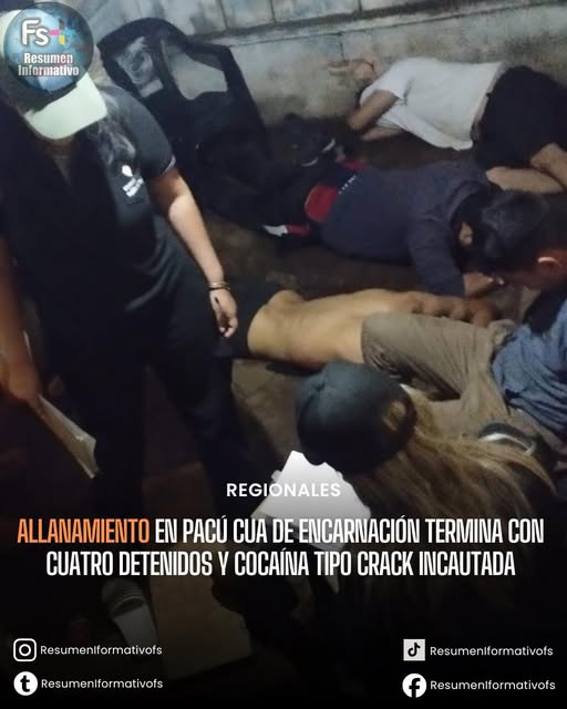ALLANAMIENTO EN PACÚ CUA TERMINA CON CUATRO DETENIDOS Y COCAÍNA TIPO CRACK INCAUTADA.