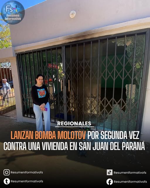 LANZAN BOMBA MOLOTOV POR SEGUNDA VEZ CONTRA UNA VIVIENDA EN SAN JUAN DEL PARANÁ.