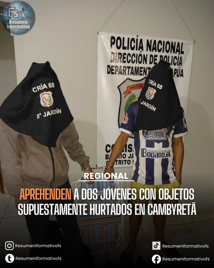 APREHENDEN A DOS JÓVENES CON OBJETOS SUPUESTAMENTE HURTADOS EN CAMBYRETÃ.