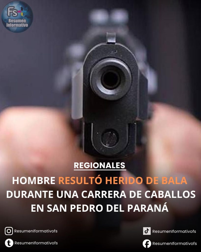 Un hombre de 28 años resultó herido de bala en la tarde de este viernes mientras participaba de una carrera de caballos en la Compañía San Rafael, distrito de San Pedro del Paraná,