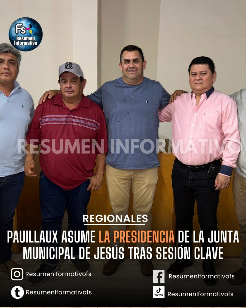 PAUILLAUX ASUME LA PRESIDENCIA DE LA JUNTA MUNICIPAL DE JESÚS TRAS SESIÓN CLAVE.