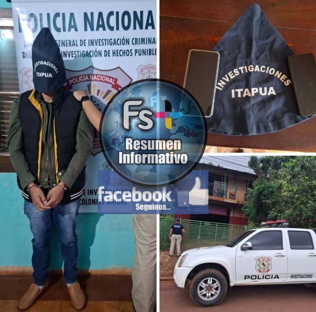 Tras ser informado de sus derechos conforme al artículo 12 de la Constitución Nacional, el detenido fue trasladado hasta la Comisaría 12 de Hohenau, donde permanece en libre comunicación, a disposición del Ministerio Público.