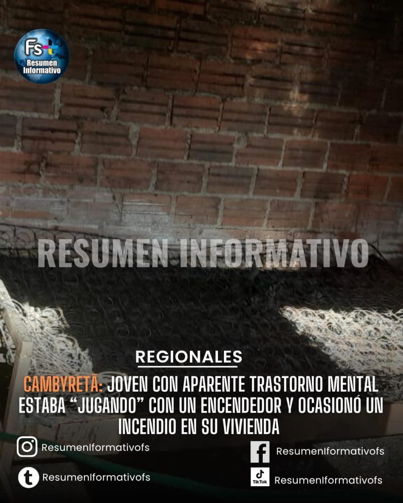 CAMBYRETÃ: JOVEN CON APARENTE TRASTORNO MENTAL ESTABA “JUGANDO” CON UN ENCENDEDOR Y OCASIONÓ UN INCENDIO EN SU VIVIENDA