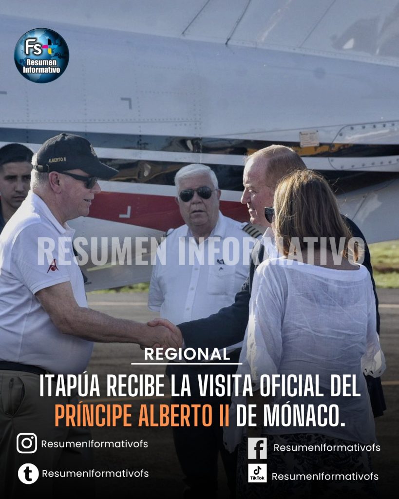 El gobernador del Departamento de Itapúa, Javier Pereira Rieve, dio la bienvenida oficial a Su Alteza Serenísima Alberto II, príncipe soberano de Mónaco, junto a su comitiva, en el Aeropuerto Teniente Amín Ayub González de la ciudad de Encarnación.