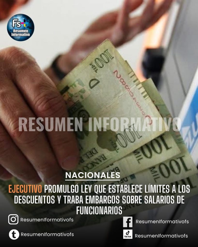 EJECUTIVO PROMULGÓ LEY QUE ESTABLECE LÍMITES A LOS DESCUENTOS Y TRABA EMBARGOS SOBRE SALARIOS DE FUNCIONARIOS.