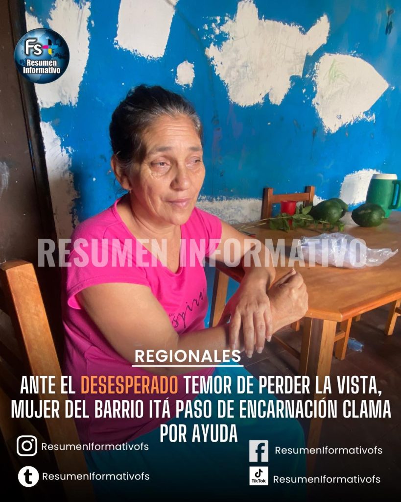 ANTE EL DESESPERADO TEMOR DE PERDER LA VISTA, MUJER DEL BARRIO ITÁ PASO DE ENCARNACIÓN CLAMA POR AYUDA.