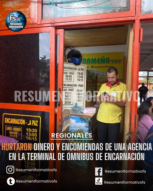 HURTARON DINERO Y ENCOMIENDAS DE UNA AGENCIA EN LA TERMINAL DE ÓMNIBUS DE ENCARNACIÓN.