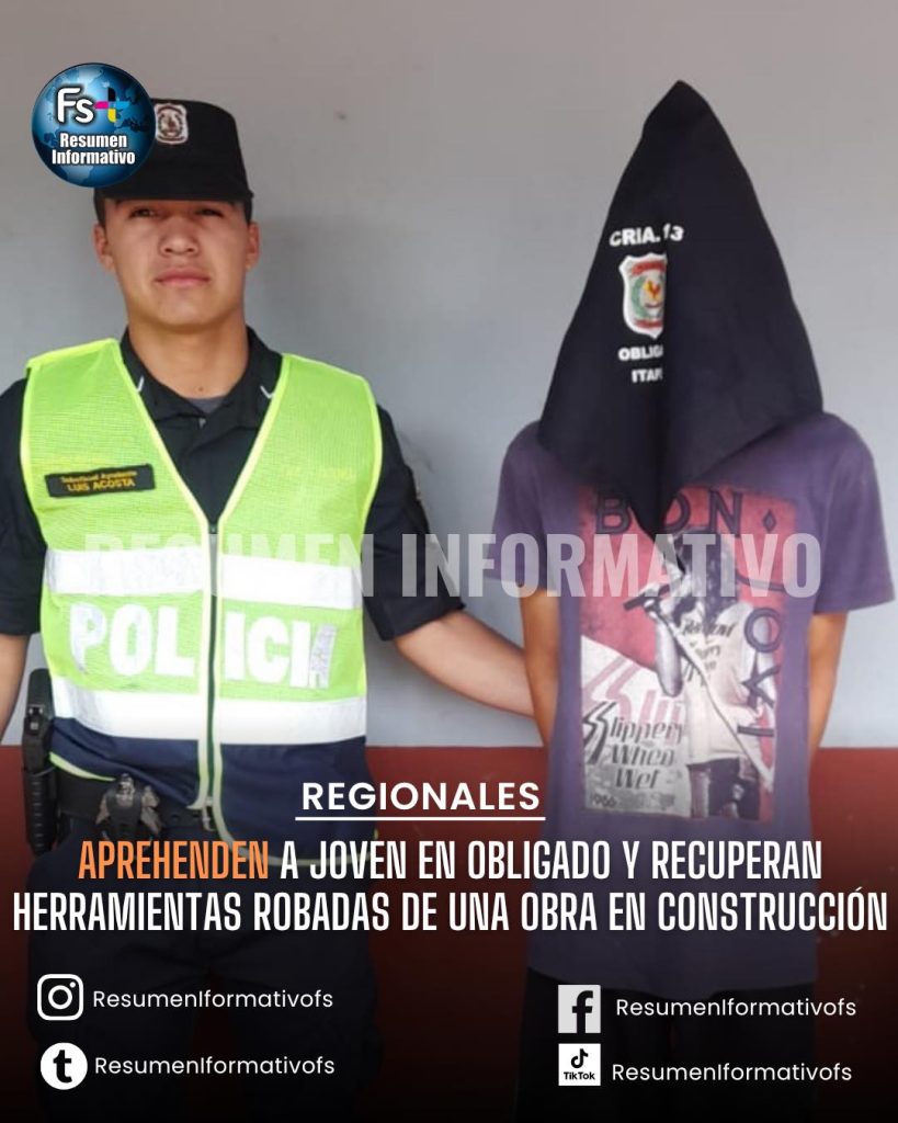 Un rápido accionar policial permitió este sábado la aprehensión de un joven de 18 años y la recuperación de herramientas robadas de una obra en construcción en la ciudad de Obligado, departamento de Itapúa.