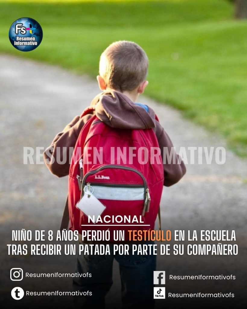 NIÑO DE 8 AÑOS PERDIÓ UN TESTÍCULO EN LA ESCUELA TRAS RECIBIR UN PATADA POR PARTE DE SU COMPAÑERO