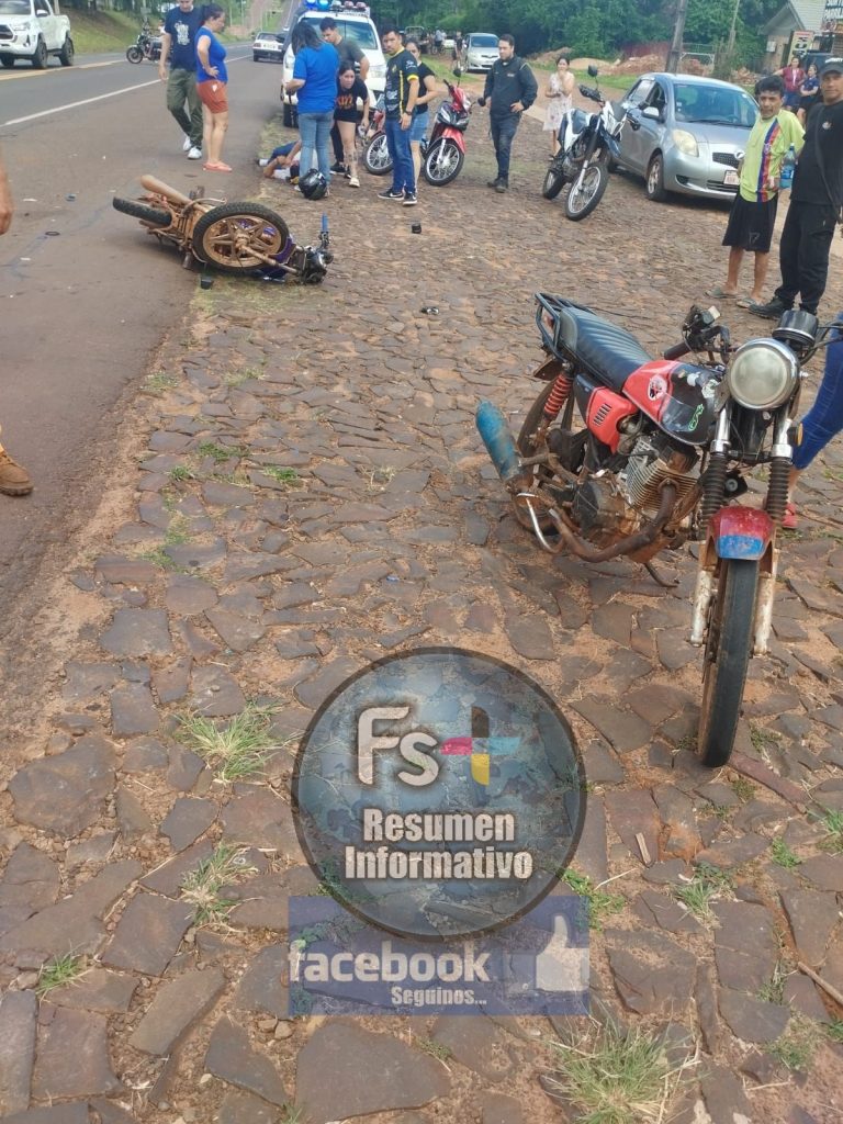 La otra motocicleta es una Maruti MD 125 cc, color rojo y sin chapa, guiada por Juan Dionisio López Escobar, de 38 años, residente en la ciudad de Bella Vista, quien también sufrió lesiones como consecuencia del impacto.