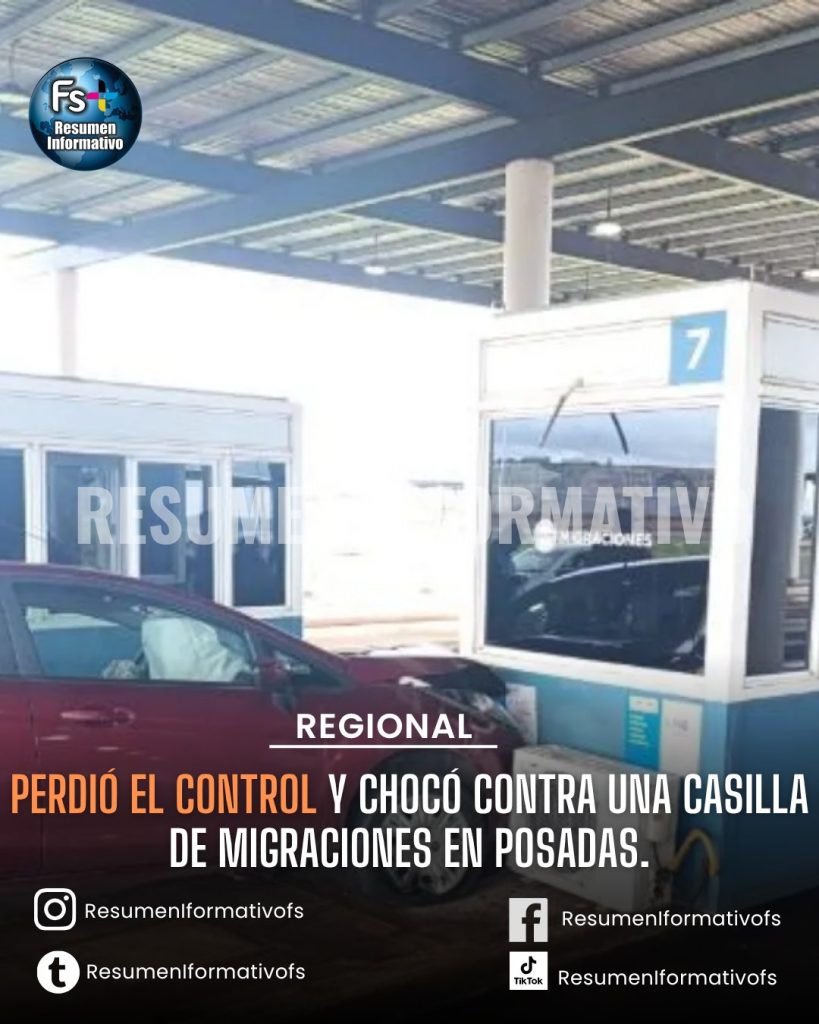 PERDIÓ EL CONTROL Y CHOCÓ CONTRA UNA CASILLA DE MIGRACIONES EN POSADAS.
