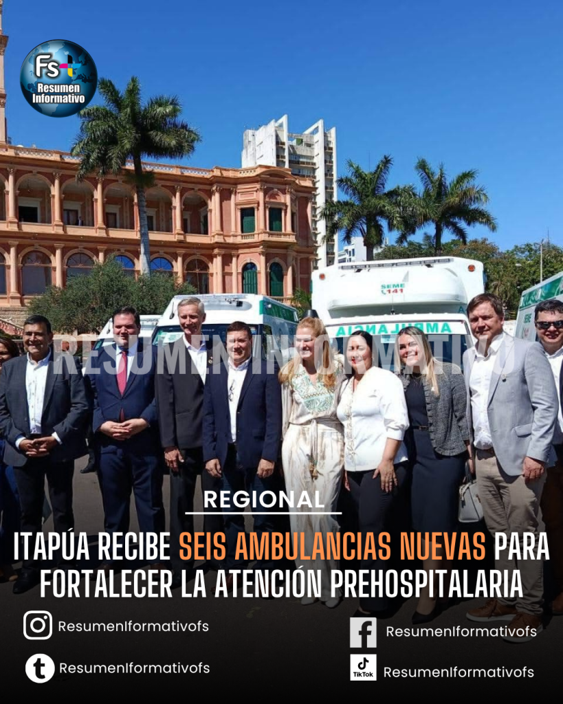 En una ceremonia realizada este lunes en el Litoral del Palacio de Gobierno, fueron entregadas 48 ambulancias de soporte avanzado y básico adquiridas por Itaipú Binacional. De este total, seis móviles fueron asignados a distintos distritos del departamento de Itapúa, reforzando de manera directa la capacidad de respuesta ante urgencias en la región.
