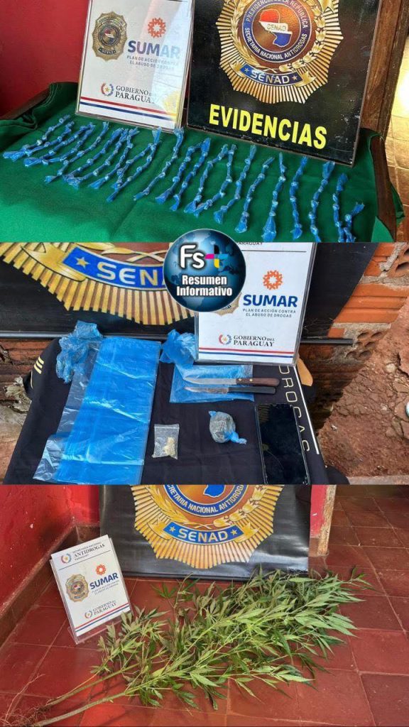 En un operativo coordinado y ejecutado con precisión, agentes especiales de la Secretaría Nacional Antidrogas (SENAD) realizaron tres allanamientos simultáneos en el barrio San Pedro de Encarnación, logrando importantes incautaciones de drogas, dinero en efectivo y la detención de tres personas vinculadas presuntamente al microtráfico en la zona.