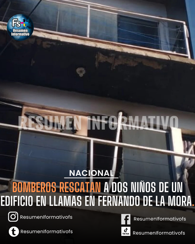 BOMBEROS RESCATAN A DOS NIÑOS DE UN EDIFICIO EN LLAMAS EN FERNANDO DE LA MORA.