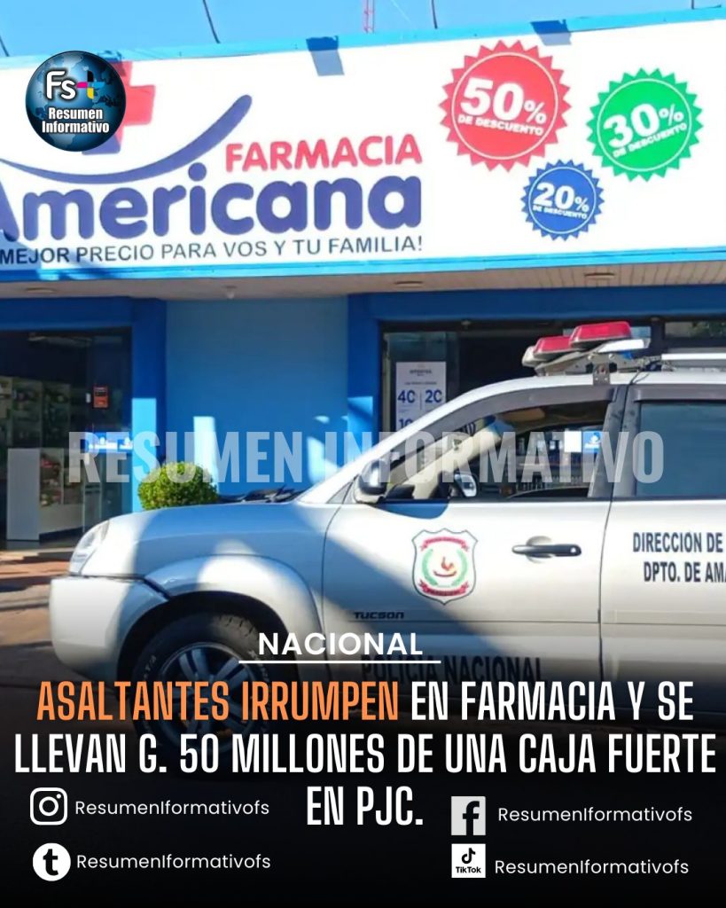 ASALTANTES IRRUMPEN EN FARMACIA Y SE LLEVAN G. 50 MILLONES DE UNA CAJA FUERTE EN PJC.